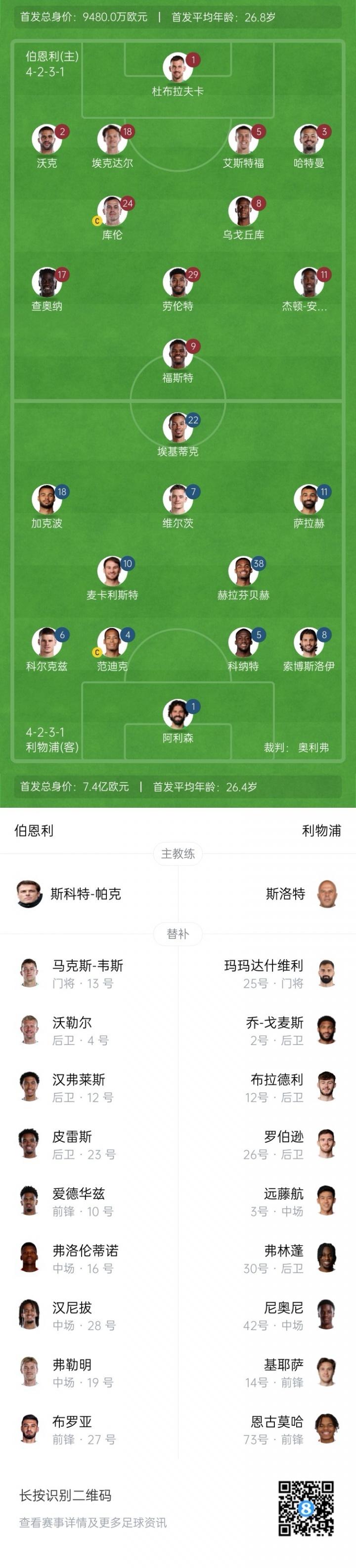 伯恩利替补:13-韦斯、4-沃勒尔、10-爱德华兹、12-汉弗莱斯、16-弗洛伦蒂诺、19-弗勒明、23-皮雷斯、27-布罗亚、28-汉尼拔