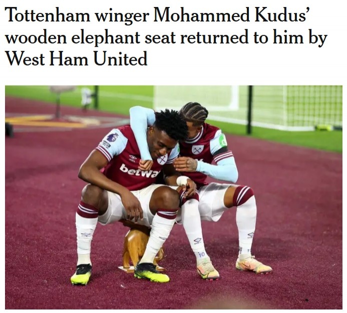 库杜斯此前接受西汉姆官方媒体采访时表示:“这是来自加纳的特殊凳子,我看到很多竞争对手和人们都在模仿庆祝动作,所以我想'为什么不做些不一样的?'”