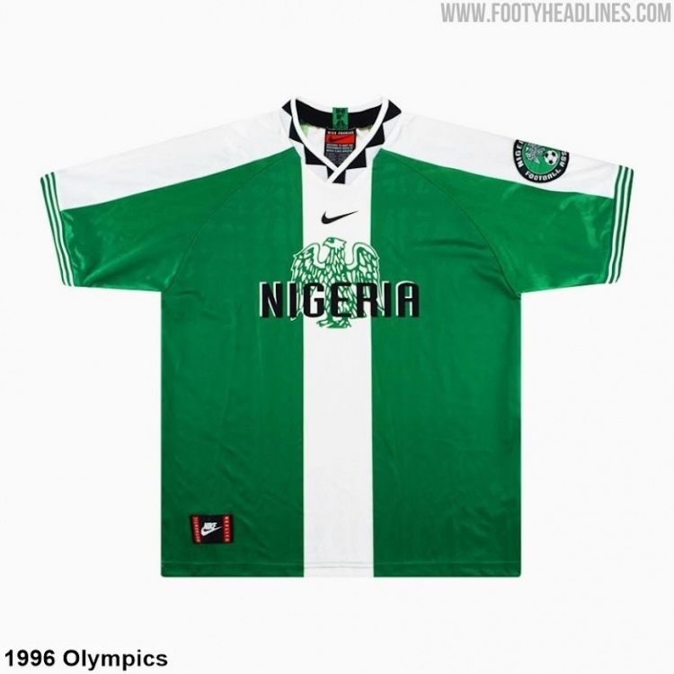 尼日利亚2026年球衣的部分设计可能会从标志性的1996年奥运会耐克尼日利亚队服(下图)中汲取灵感,尤其是雄鹰元素。我们或许会在2026年世界杯尼日利亚球衣上看到以相同位置出现的雄鹰图案,可能是作为纹样或图形呈现。
